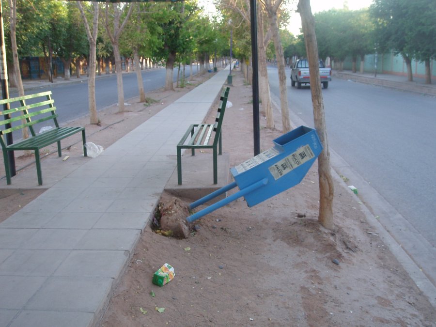 El hecho ocurrió la madrugada del domingo 16 de diciembre, donde unos 8 cestos de basura fueron arrancados de su lugar mediante el uso de la fuerza.
