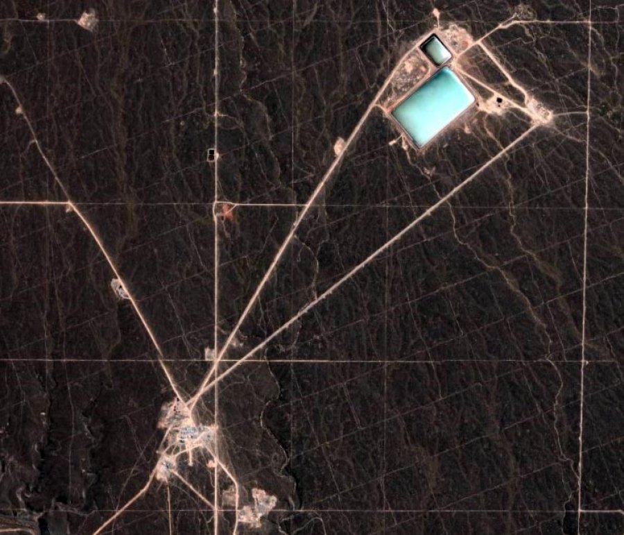 Fotografía: Base de la empresa Potasio Rio Colorado, a unos 70 kilometros de Rincón de los Sauces. Google Earth