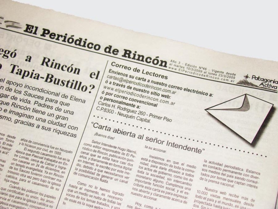 Señor Intendente Hugo Wernli, como editor responsable de El Periódico de Rincón, publicación quincenal que se edita hace casi dos años, y diariamente en forma digital en Internet, le escribo por este medio, debido a que necesitamos ver la posibilidad de generar un canal de comunicación fluida.