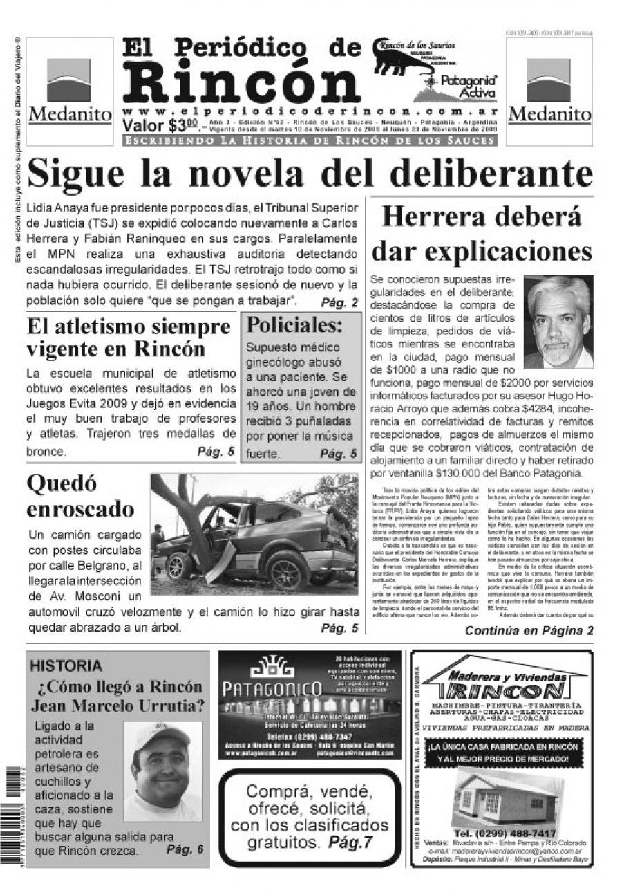 En esta oportunidad, el periódico impreso revela un detallado informe sobre todo lo ocurrido en el concejo deliberante con el cambio de presidencia y las presuntas irregularidades halladas en el cuerpo legislativo donde el MPN afirma que “Herrera deberá dar explicaciones”.