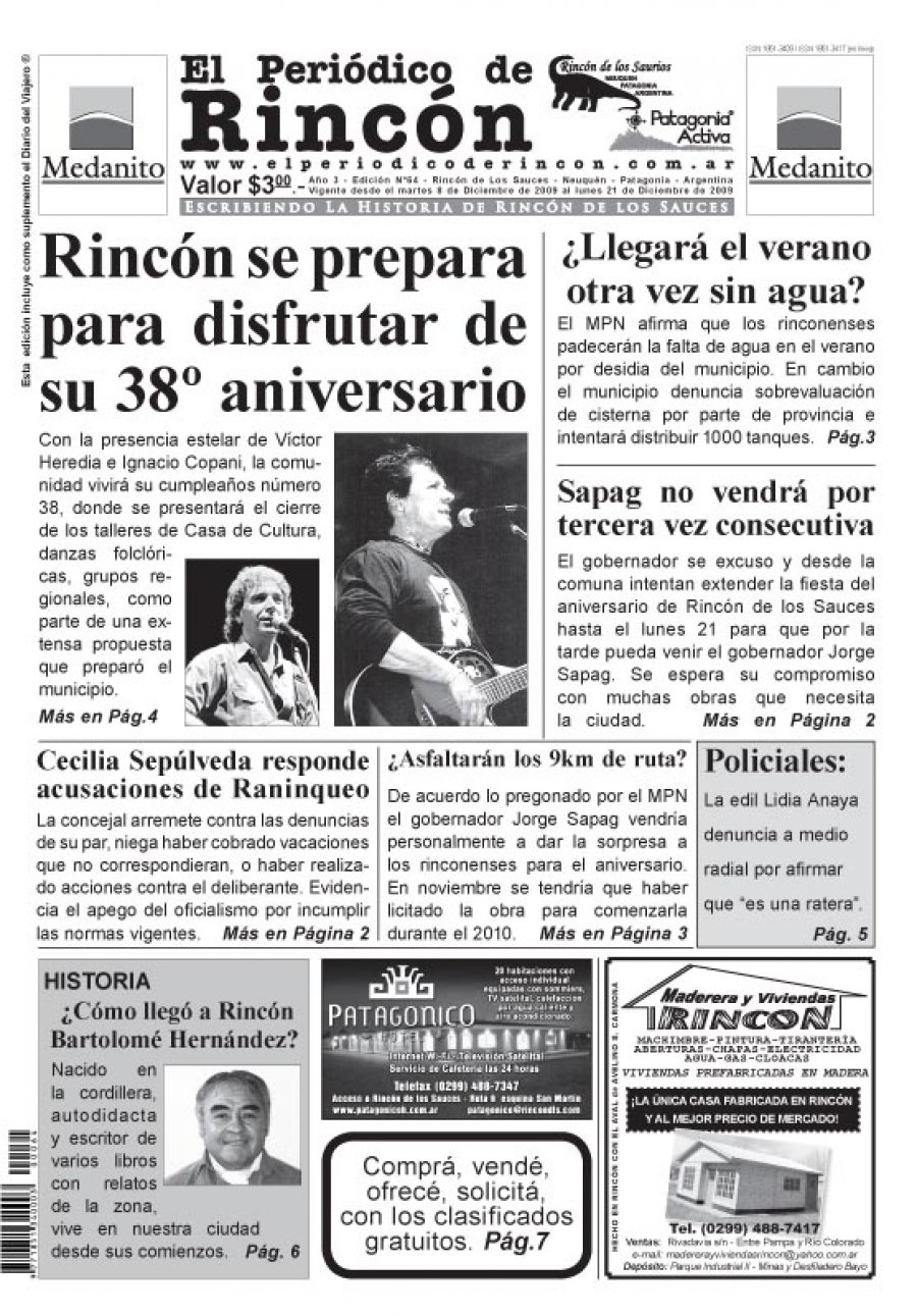 A partir del miércoles 9 de diciembre, ya que el martes fue feriado por el día de la virgen, llegará una nueva edición de El Periódico de Rincón, en esta ocasión la edición en papel número 64.