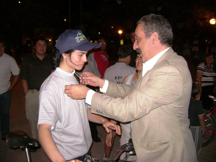 Antes de la partida, el intendente Wernli, entregó un rosario a cada ciclista y luego fue el encargado de dar inicio a la prueba que recorrerá más de mil kilómetros en todo su trayecto.