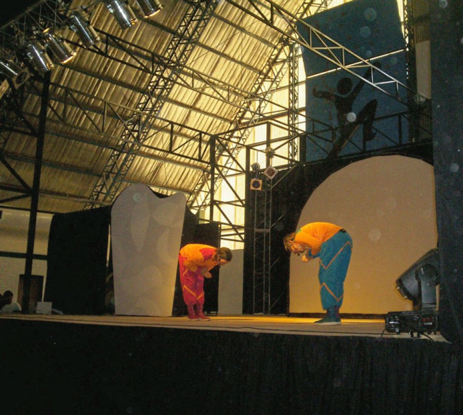 En una hora, los actores interactuaron con el público infantil y adulto, mediante interesantes juegos, una escenografía novedosa y diálogos picarescos.