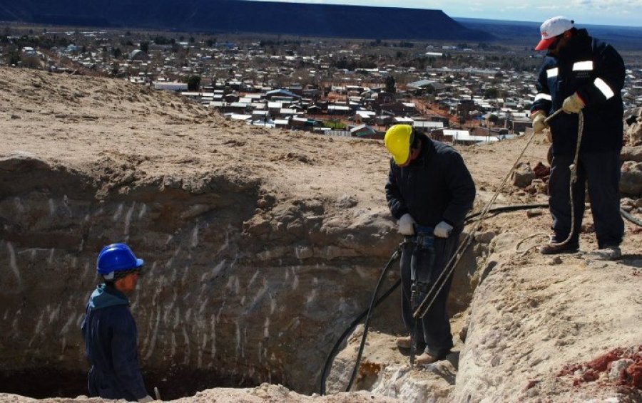 Un intenso trabajo de movimiento de suelo se realiza el alto de la ciudad, donde trabajadores realizan las perforaciones sobre el Cerro La Cruz, donde se emplazará la escultura de un Cristo gigante, de 12 metros de altura y cuyo peso aproximado ronda las 40 toneladas.
