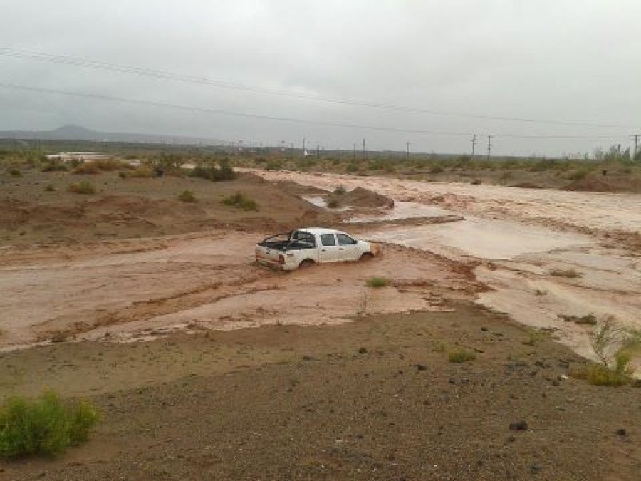 Hacía Catriel, la Ruta Provincial 6 ha sido cortada por diversos ríos secos que su caudal fue alimentado por las fuertes lluvias que descendían desde el Auca Mahuida.