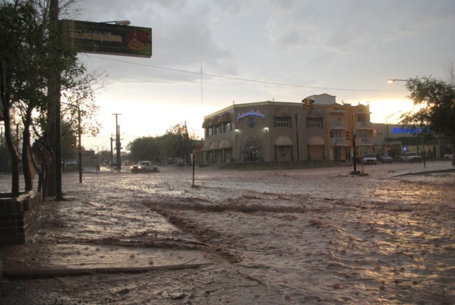 En la zona del centro, el agua ingresó a varios comercios que se vieron desbordados por la situación, al igual que en muchos domicilios donde el agua ingresó dentro de las viviendas. Los dos cañadones que rodean a la ciudad quedaron repletos de agua lo que provocó el aislamiento durante aproximadamente una hora y media.