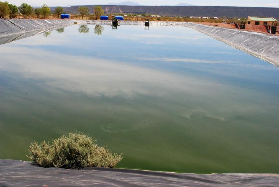 Operarios de la empresa privada Ecokit realizan los trabajos integrales de remediación de las piletas de tratamiento de líquidos cloacales de la ciudad.