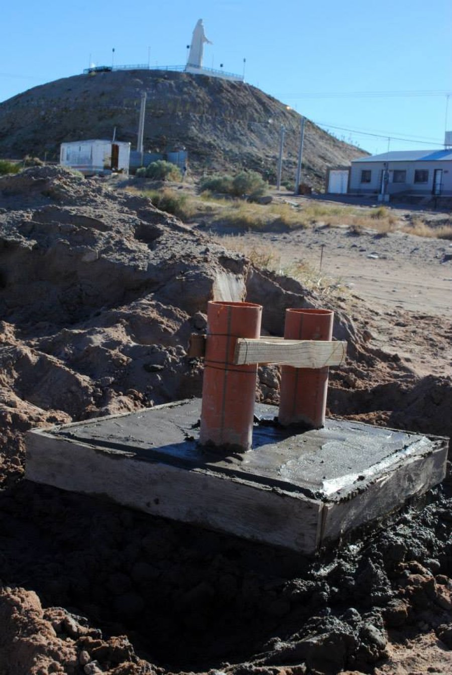 El personal del municipio se encuentra realizando la construcción de las bases donde se montarán los postes de hierros que llevarán el tendido eléctrico para las Manzanas S ubicadas en el alto de la ciudad.