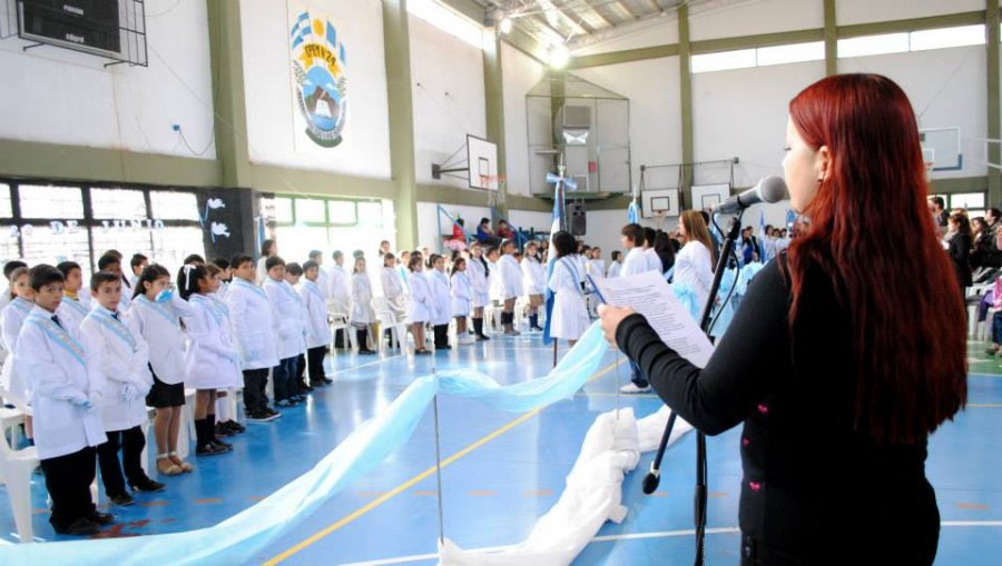 Durante la ceremonia alumnos de la escuela 346 interpretaron el himno nacional en lenguaje de señas reflejando la apertura e integración de la comunidad hipoacúsica en la sociedad rinconense.