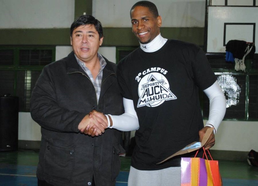 El reconocido basquetbolista norteamericano, Byron Johnson, dictó una clínica de básquet a los chicos del Club Auca Mahuida y recibió el reconocimiento del intendente Marcelo Rucci mediante un presente.
