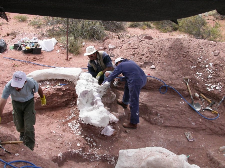 Las excavaciones fueron realizadas por un equipo de paleontólogos pertenecientes a varias instituciones neuquinas, nacionales y extranjeras, en un trabajo de campo que demandó 15 días. El hallazgo fue realizado por miembros de la familia Parada, tradicionales vecinos de Rincón de los Sauces, quienes desde hace años han estado colaborando en el rescate y puesta en valor del patrimonio paleontológico de esa área.