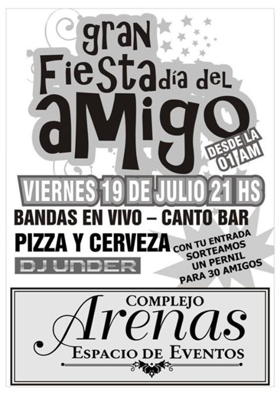 Se acerca el Día del Amigo y desde el Complejo Arenas se ha decidido festejarlo a lo grande.