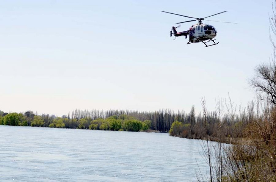 El helicóptero Bolkow BO-105 del Sindicato de Petróleo y Gas Privado de Río Negro, Neuquén y La Pampa, sobrevoló nuevamente la zona de las costas de los ríos Limay y Neuquén, en la mañana del 26 de septiembre, colaborando en la búsqueda de Belén Durán, de dos años, desaparecida el pasado sábado de su hogar en Balsa Las Perlas.
