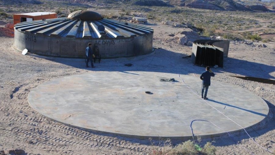 Mediante el trabajo de una empresa privada se realiza el montaje de tres tanques cisternas con una capacidad de 500 mil litros cada uno lo que duplicará la capacidad de acopio de agua que tiene actualmente Rincón de los Sauces.