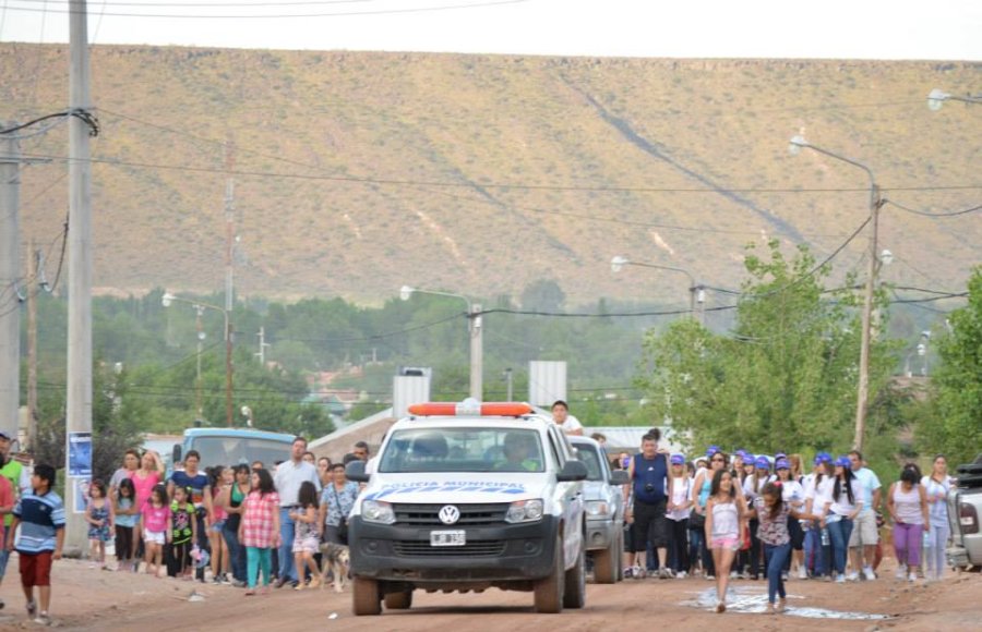 La ceremonia comenzó a partir de las 19 horas en la puerta de la Parroquia, y luego se trasladó en procesión con la imagen de la Virgen, hasta los pies del Cerro del Cristo Patrono de Rincón de los Sauces, donde pasadas las 20 comenzó la celebración eucarística.