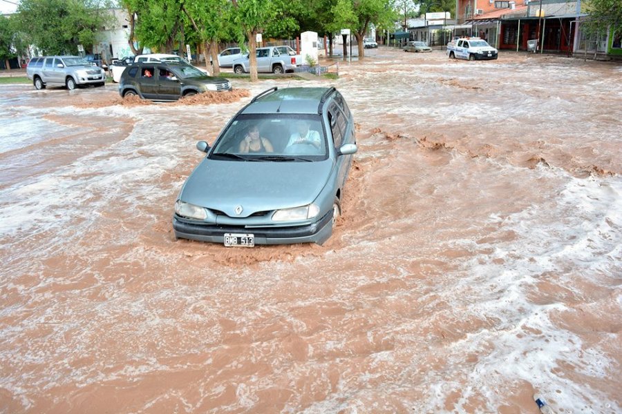 La cantidad de agua caída en menos de tres horas se apoderó de las calles y generó serios inconvenientes en el sector de los cañadones.