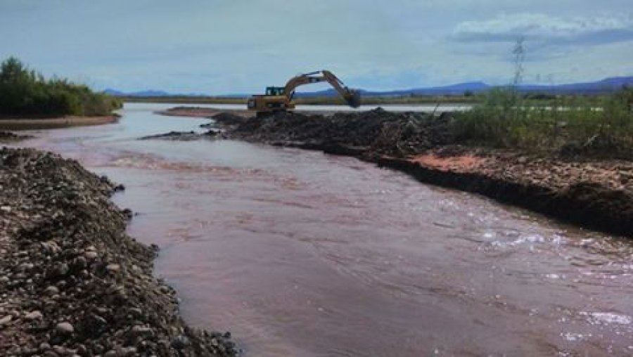 El operativo continuará esta semana sobre la margen del río Colorado, con el trabajo de una retro excavadora oruga de gran porte que fue aportada por la provincia.