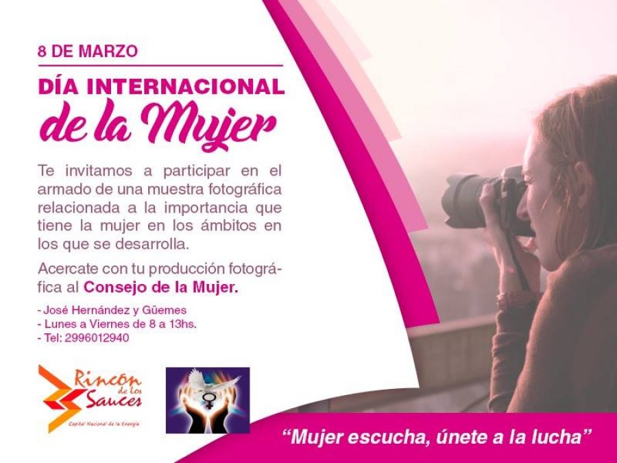 Desde el Consejo Local de la Mujer de la municipalidad de Rincón de los Sauces invitaron a la comunidad a sumarse a la muestra fotográfica que se realizará el próximo 8 de marzo.