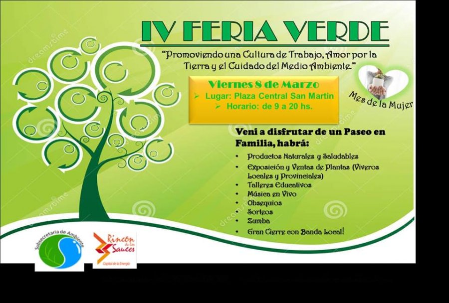 Desde la Subsecretaria de Medio Ambiente se informó que se está trabajando en la organización de la "4° Feria Verde" que se llevará a cabo el día viernes 8 de marzo en la plaza San Martín de nuestra ciudad.