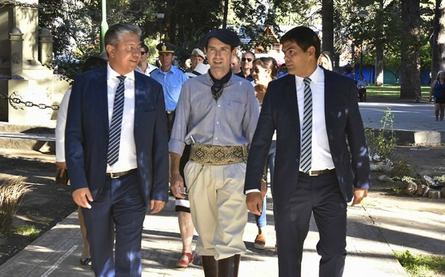 Los funcionarios fueron recibidos en la sede municipal por el intendente a cargo y participaron de la colocación de una ofrenda floral en el busto del Sargento Mayor Vidal, fundador de Junín de los Andes.
