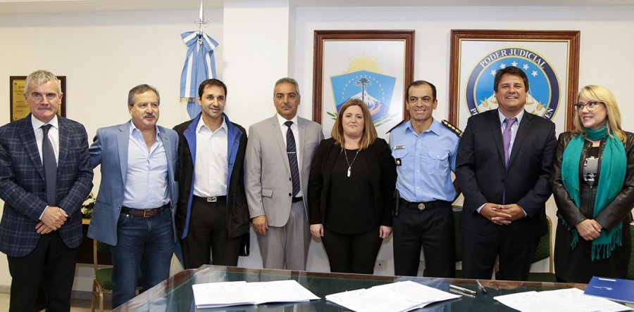 El acuerdo fue firmado en dependencias juridiciales de esta capital y lo rubricaron, además, el presidente del TSJ, Roberto Germán Busamia; la vocal del TSJ responsable de la Oficina de la Mujer y delegada provincial de la Asociación de Mujeres Jueces de Argentina (AMJA), María Soledad Gennari; el Jefe de Policía, Rubén Tissier; los subsecretarios de Seguridad, Gustavo Pereyra; y de Derechos Humanos, Alicia Comelli; y el también vocal del TSJ, Evaldo Darío Moya.