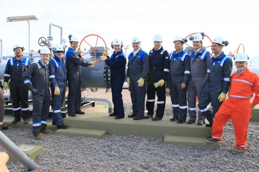 El presidente Mauricio Macri y el gobernador de Neuquén, Omar Gutiérrez, acompañados de funcionarios nacionales y provinciales, junto a las autoridades de YPF y Tecpetrol dejaron formalmente inaugurado este viernes 3 de mayo el oleoducto Loma Campana-Lago Pellegrini.
