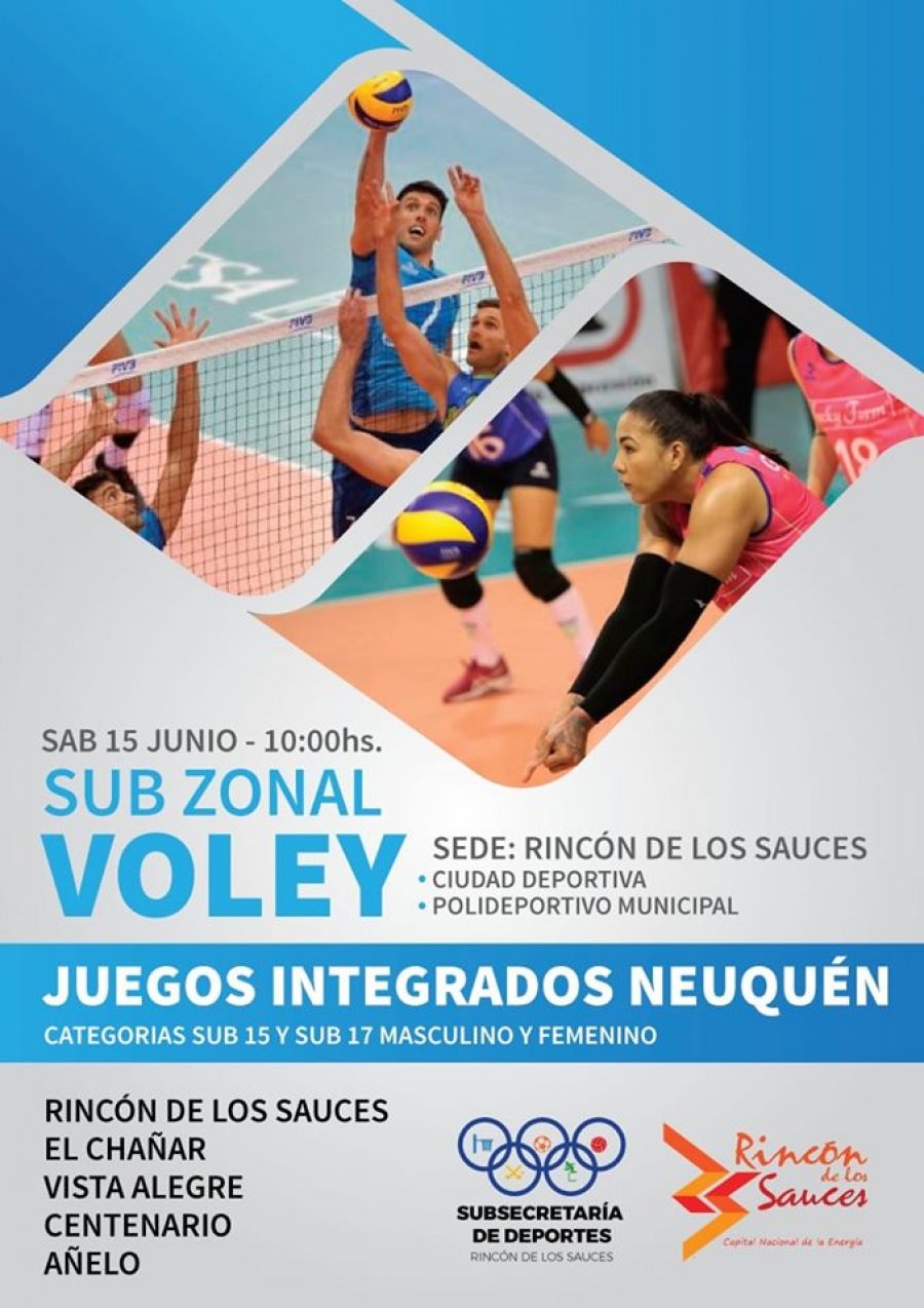 Este Sábado 15 de junio Rincón de los Sauces será la Sede de los Juegos Integrados Neuquinos, en las Categoría Sub 15 y Sub 17 de Voley.
