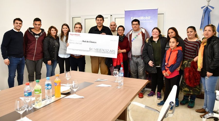 El jueves 27 de junio ExxonMobil realizó un aporte de 4,1 millones de pesos para financiar la primera etapa del proyecto de red cloacal para el barrio Libertad y Las Bardas de Rincón de los Sauces. Se trata de una obra de interés comunitario que permitirá mejorar la calidad de vida de los habitantes del barrio, en particular, y de la localidad del norte de la provincia del Neuquén en general.