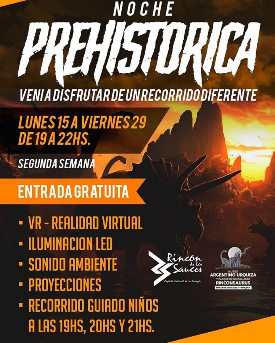 Desde el Museo Municipal Argentino Urquiza informaron que entre el 15 y el 29 de julio, la comunidad de Rincón de los Sauces podrá disfrutar de “La noche prehistórica” en las instalaciones del Museo.
