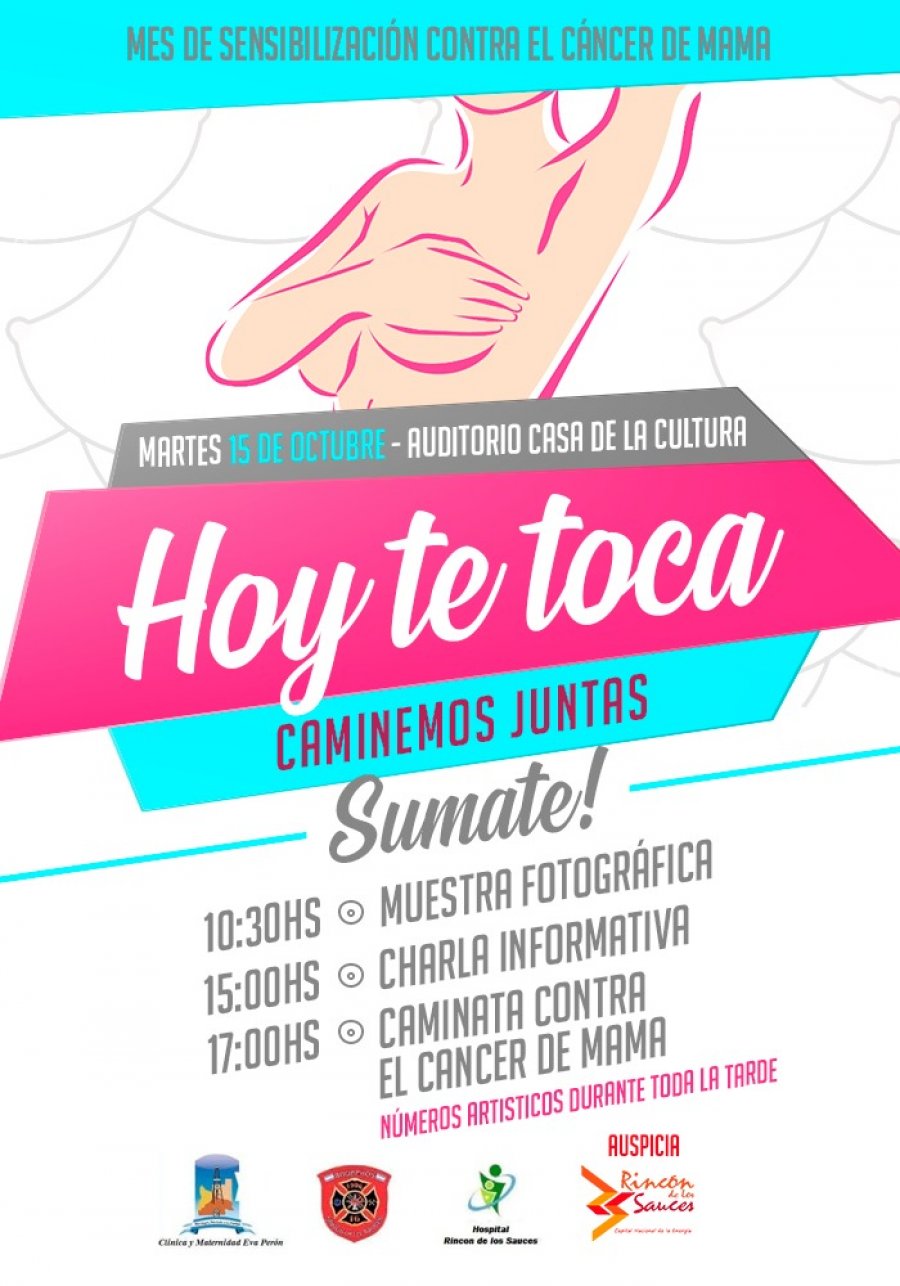 En ocasión del mes de sensibilización contra el cáncer de mama, el Consejo de la Mujer invita a participar de la actividad de promoción que se realizará este martes 15 de octubre, auditorio Casa de la Cultura a partir de las 12 horas.