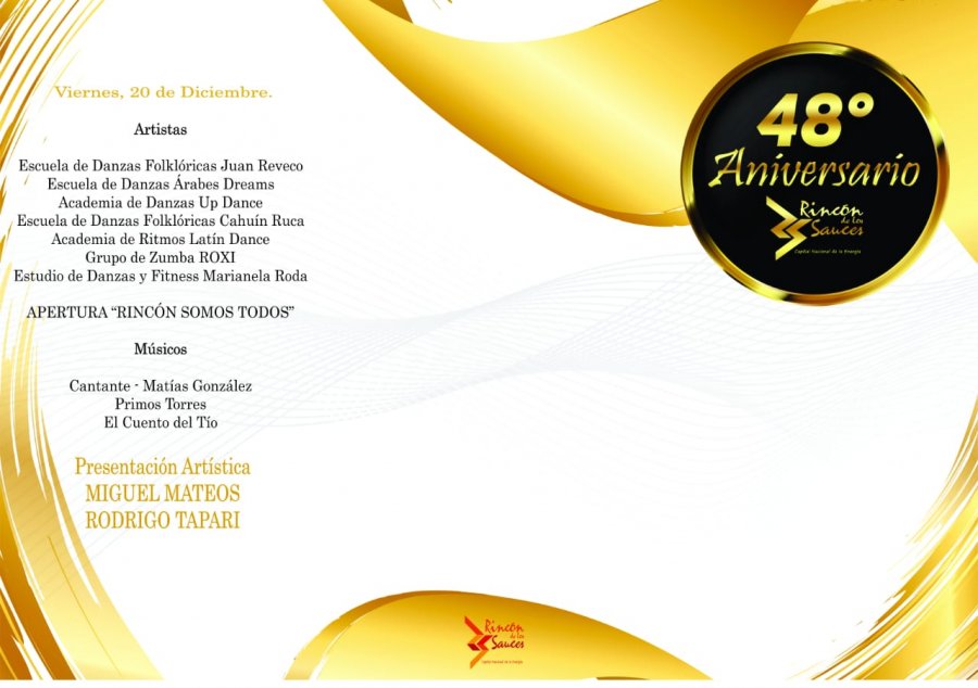 Con una serie de festejos que se iniciaron el 13 de Diciembre, con el Aniversario de la Biblioteca Don Elías Sapag, siguió el 15 con la Carrera Infanto Juvenil y el 16 con el acto de cierre de las Iglesias en la plaza San Martín, continúan a partir del miércoles 18 las distintas actividades organizadas por la comuna rinconense, en este nuevo aniversario de la ciudad.