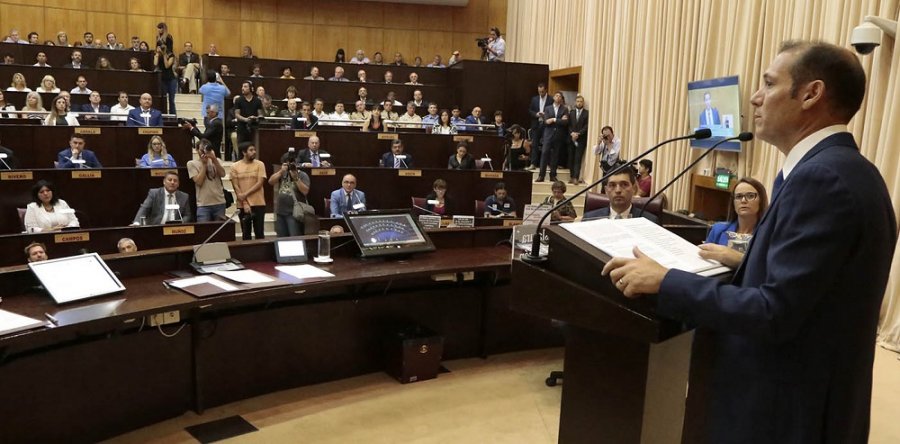 El gobernador Omar Gutiérrez presentó el domingo 1 de marzo 18 proyectos de ley, propuso la creación de un fondo anticíclico, la mejora del sistema previsional neuquino y convocó a los sectores gremiales docentes a no abandonar la vía del diálogo para solucionar las diferencias, “cumpliendo con los acuerdos que están vigentes”. Fue durante su mensaje de apertura del XLIX período de sesiones ordinarias de la Honorable Legislatura del Neuquén.