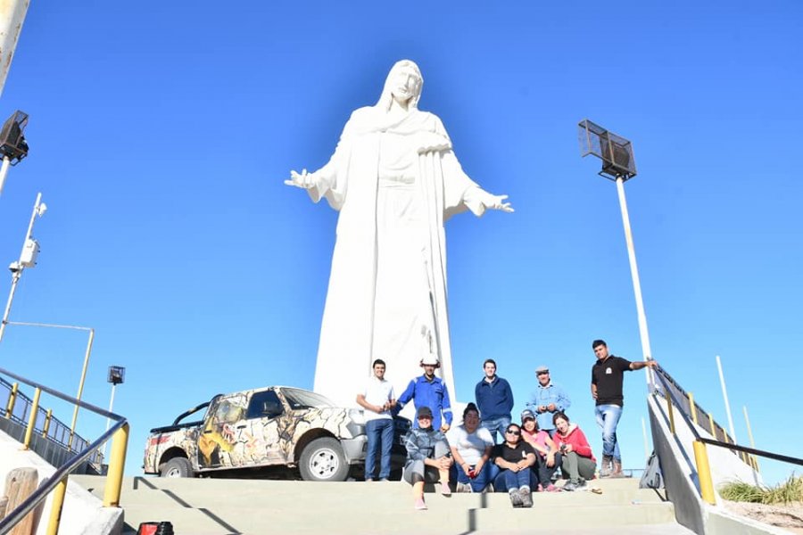 Cabe recordar que el Cristo Patrono fue construido en el año 2012 cuando la municipalidad de Rincón de los Sauces contrató al reconocido escultor Aldo Beroísa, quien emplazó la escultura de unos 12 metros de altura en el mítico cerro La Cruz.