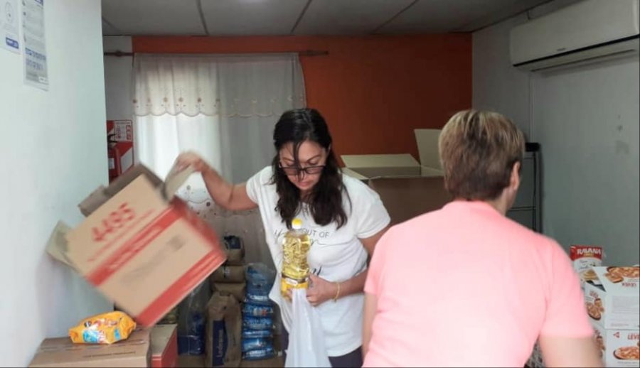 La Directora del Distrito Escolar N°XII, Analía Alarcón, encabeza el operativo de entrega de módulos alimentarios enviados recientemente por el Consejo Provincial de Educación.