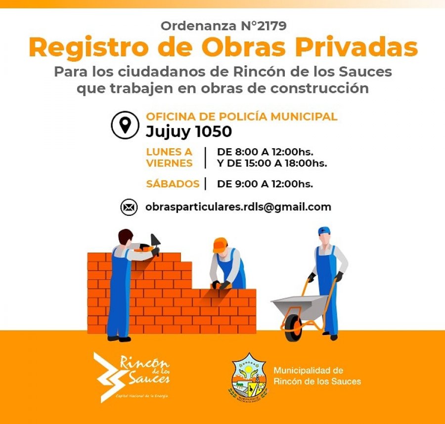La Dirección de Obras Particulares atenderá, en Calle Jujuy 1050, de Lunes a Viernes de 8:00 a 12:00 hs y de 15:00 a 18:00 hs. Y los días Sábados de 9:00 a 12:00 hs.