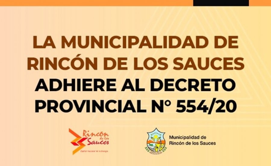 El municipio de Rincón de los Sauces informó que adhirió a las nuevas excepciones del cumplimiento del Aislamiento Social, Preventivo y Obligatorio y de la prohibición de circular a las personas afectadas a las actividades y servicios detallados a partir de las 00:00 hs del día Martes 19 de Mayo de 2020.