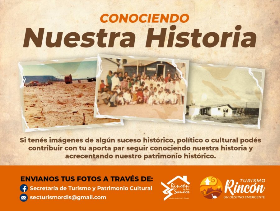 Desde la Secretaria de Turismo Municipal de Rincón de los Sauces, a cargo de Carlos Fuentes, se convocó a todos los vecinos y vecinas de la localidad que posean material fotográfico, fílmico, de algún suceso histórico, político, cultural, deportivo o de toda índole reflejando hechos de la historia local enviarlos vía e-mail para su recopilación.