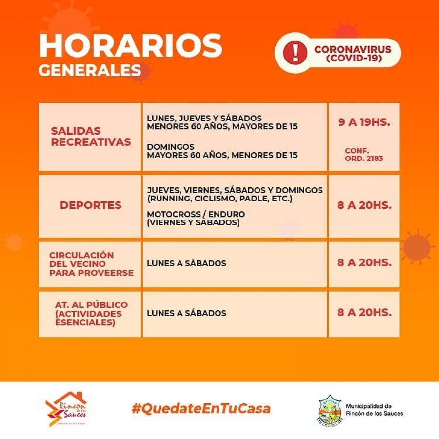 A modo de recordatorio, se expresa que ahora las salidas recreativas están autorizadas los lunes, jueves y sábados para menores de 60 años y mayores de 15, de 9 a 19 horas y los domingos para mayores de 60 años y menores de 15.