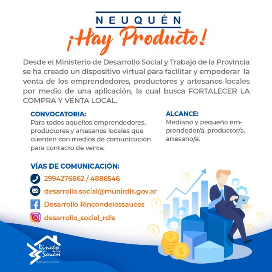 El mismo está destinado para aquellos que cuenten con medios de contactos y con fotografías de sus productos, para integrar una red provincial de exposición de los mismos para la venta.