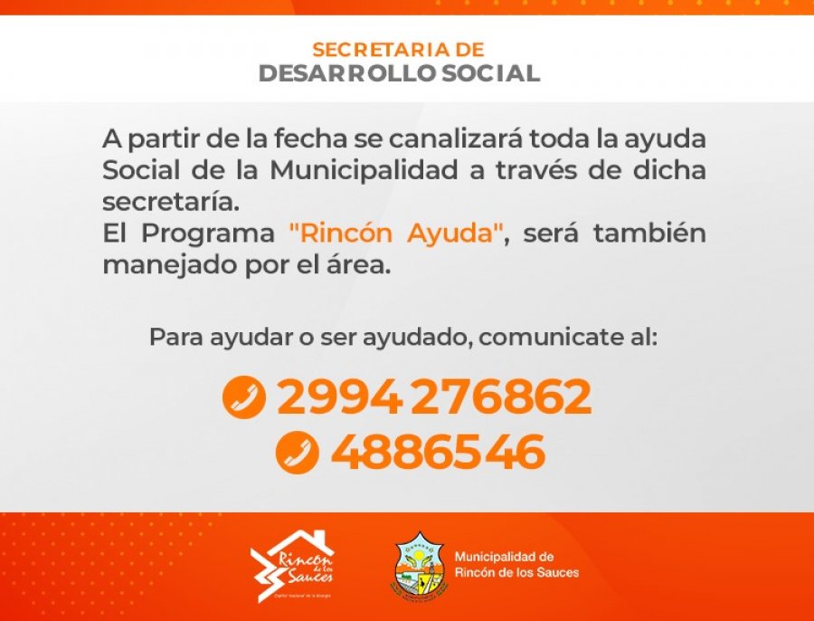 El Programa "Rincón Ayuda", será también manejado por el área, a fin de poder llegar a la mayor cantidad de familias que lo necesiten.