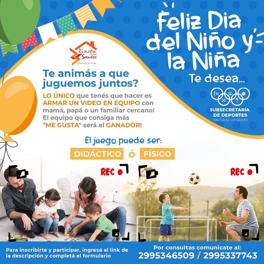 La Subsecretaría de Deportes invita a las familias rinconenses a sumarse a los festejos virtuales del Día del Niño y la Niña con la producción de un video que será compartido en las redes sociales.