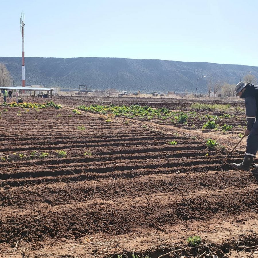 "Y estamos preparando la tierra para las semillas de primavera y verano, para proveer de alimentos a los comedores. “La idea es seguir ayudando a los comedores Las Bardas y Rita Guzmán”, explicó. (Foto: Miguel Huentecol).