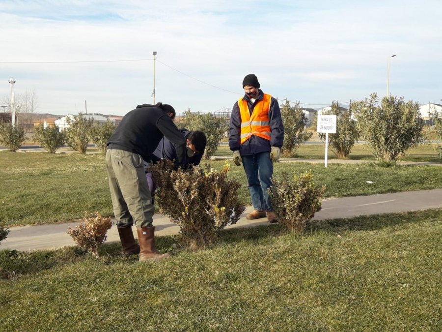 Además, se lleva a cabo la poda de mantenimiento de arbustos de la Rotonda con el objetivo de embellecer el ingreso a la localidad. También se realizan trabajos similares y de pintura en la plaza General San Martín.