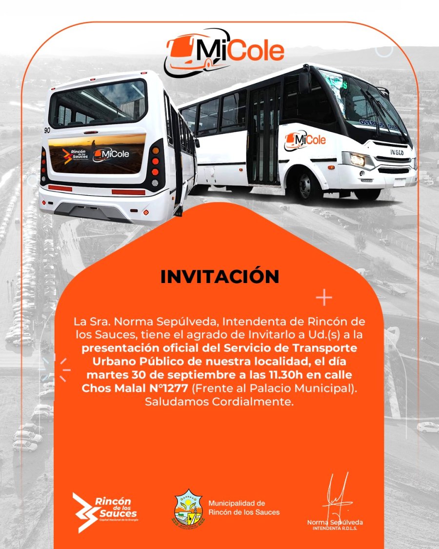 La intendenta Norma Sepúlveda encabezará el próximo martes 30 de septiembre, a las 11.30 horas, la presentación oficial del Servicio de Transporte Urbano Público “MiCole”, una iniciativa que busca mejorar la movilidad de los vecinos y vecinas de la ciudad.