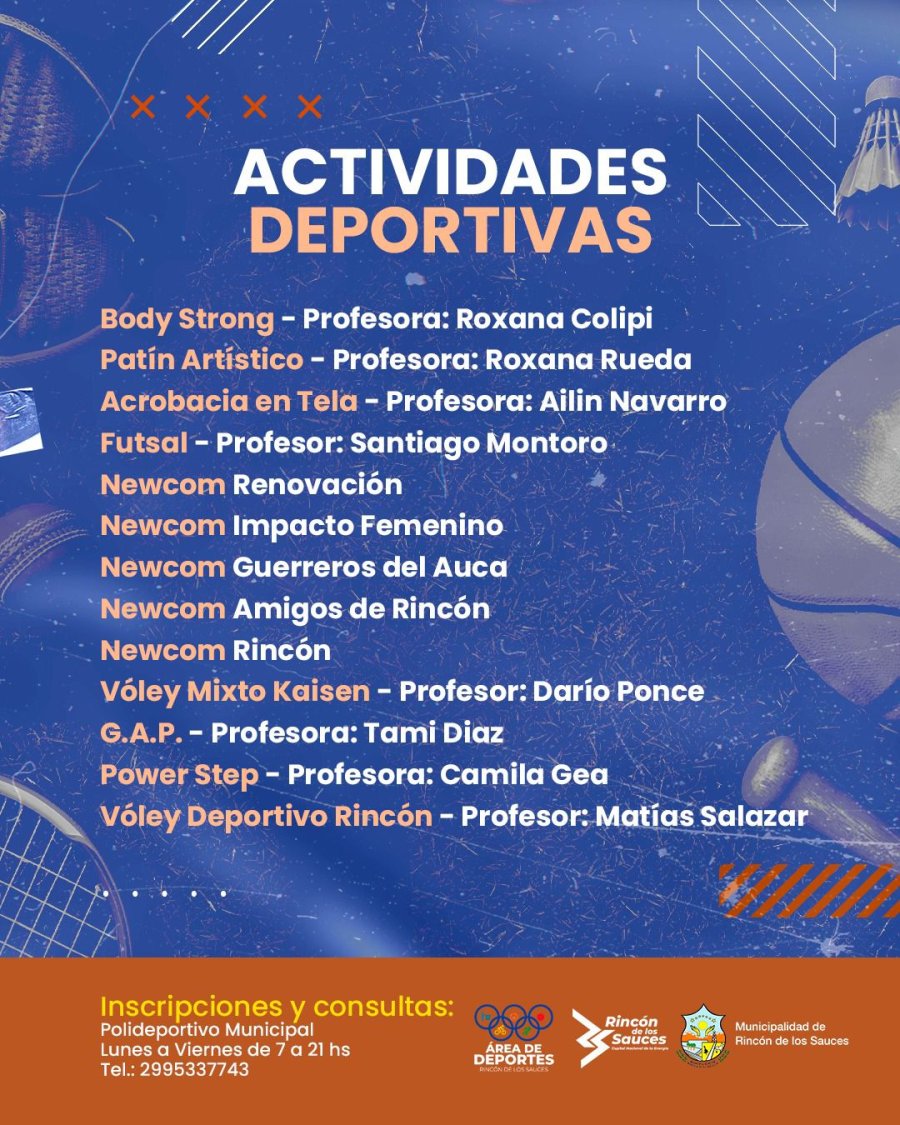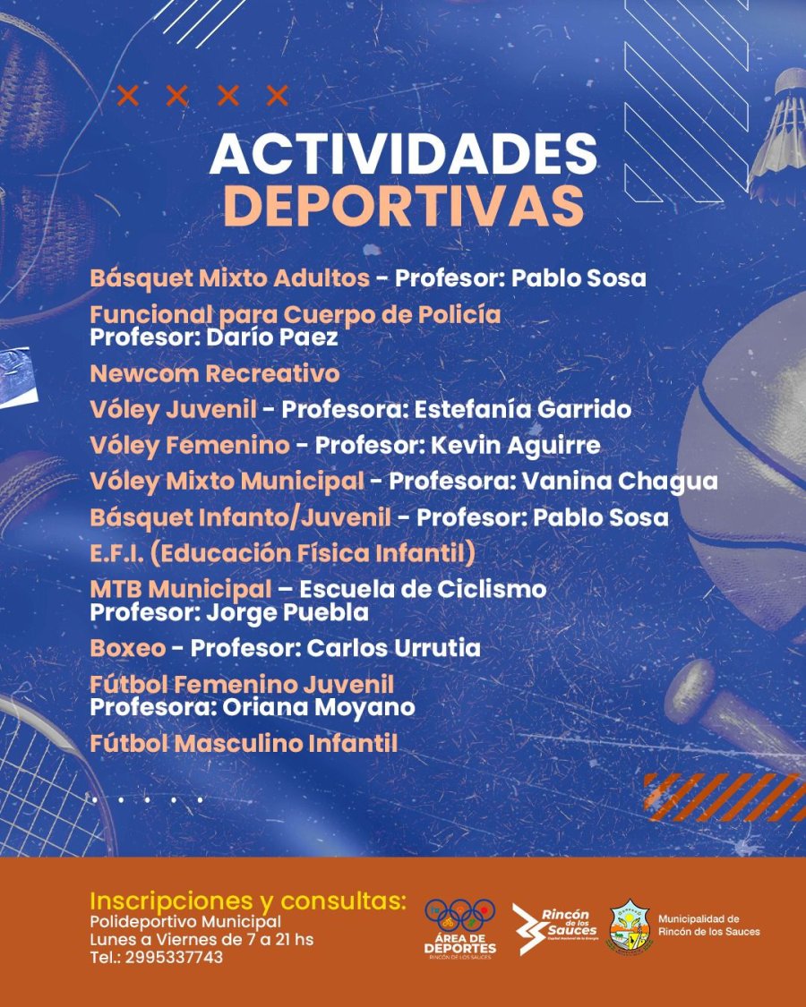 La municipalidad de Rincón de los Sauces invita a la comunidad a participar de diferentes actividades deportivas y promover el deporte, la recreación y una vida más saludable.
