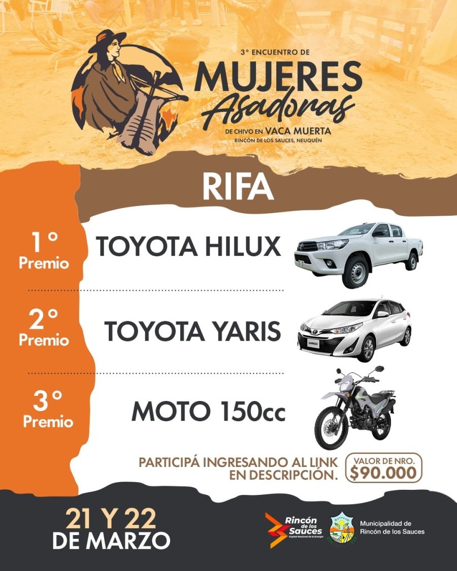 En el marco del 3° Encuentro de Mujeres Asadoras de Chivo en Vaca Muerta, que se realizará los días 21 y 22 de marzo en Rincón de los Sauces, se lanzó oficialmente una rifa con importantes premios.