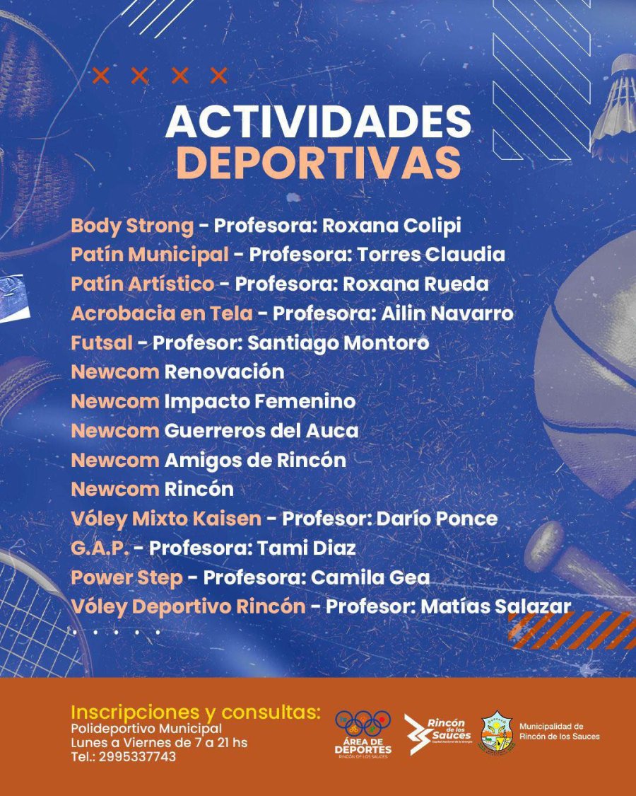 Desde el Área de Deportes de la Municipalidad de Rincón de los Sauces continúan con la promoción del deporte, la recreación y la vida saludable a través de una amplia propuesta de disciplinas para todas las edades.